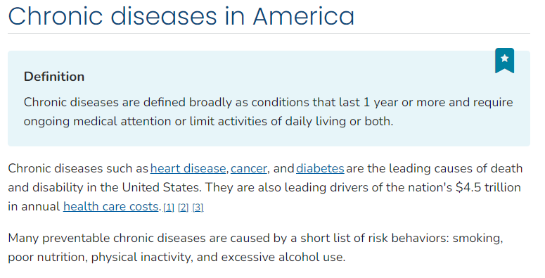 So the root cause of chronic disease is pretty clear - doctors know about it, patients know about it, and national medical organizations disseminate this information broadly.